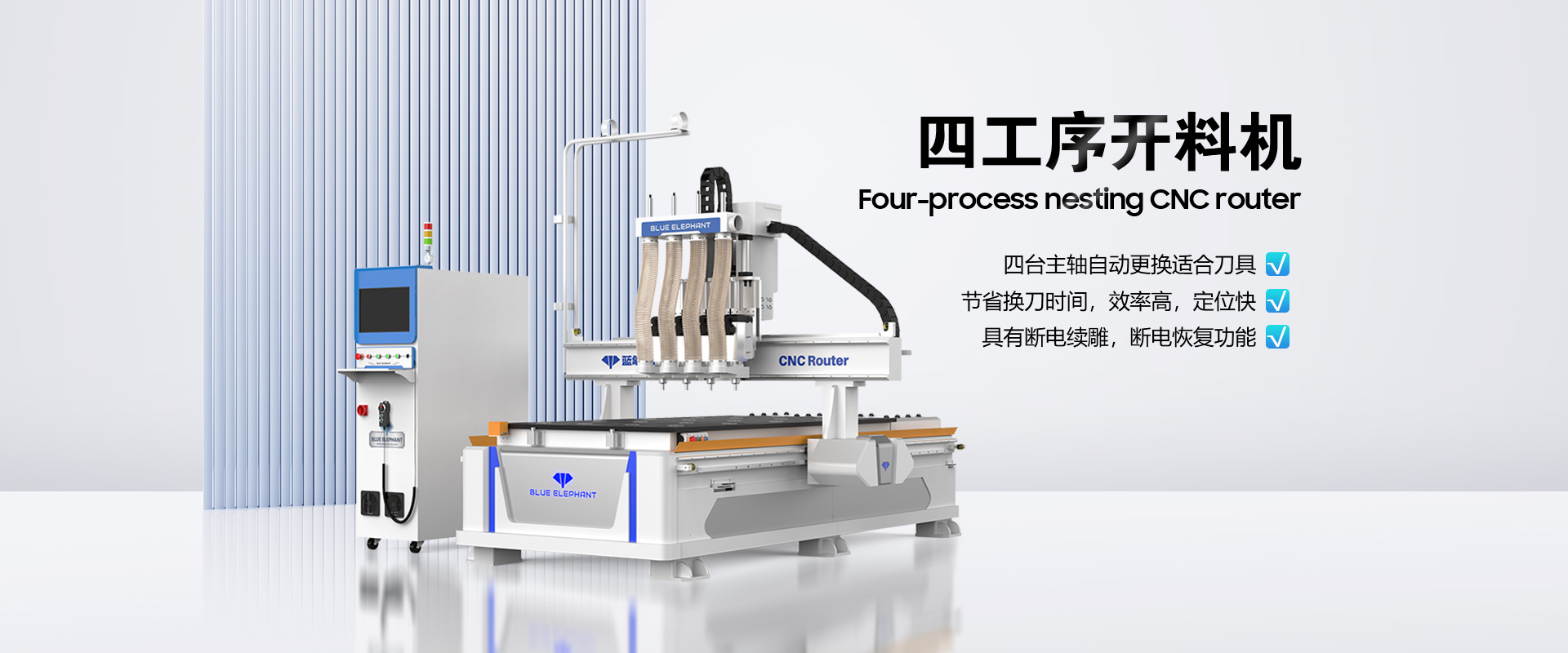 藍(lán)象數(shù)控(BLUE ELEPHANT)是一家自動(dòng)化木工設(shè)備及數(shù)控設(shè)備研發(fā)、制造、銷售、售后服務(wù)于一體的高新技術(shù)企業(yè),為客戶量身打造個(gè)性化需求的自動(dòng)化設(shè)備解決方案。主營全自動(dòng)封邊機(jī)、板式家具生產(chǎn)線、數(shù)控開料機(jī)、木工開料機(jī)、數(shù)控排鉆設(shè)備等產(chǎn)品。